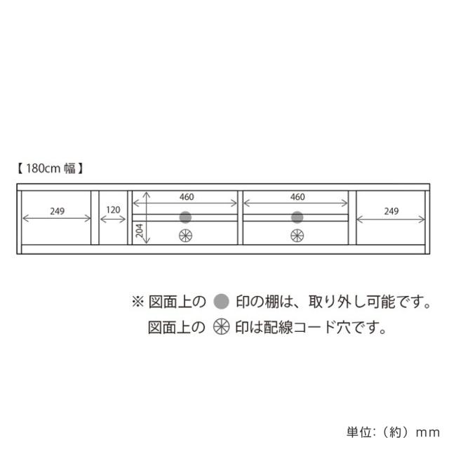 | サイズ | 約 幅180×奥行42.2×高さ30.6(cm) |
