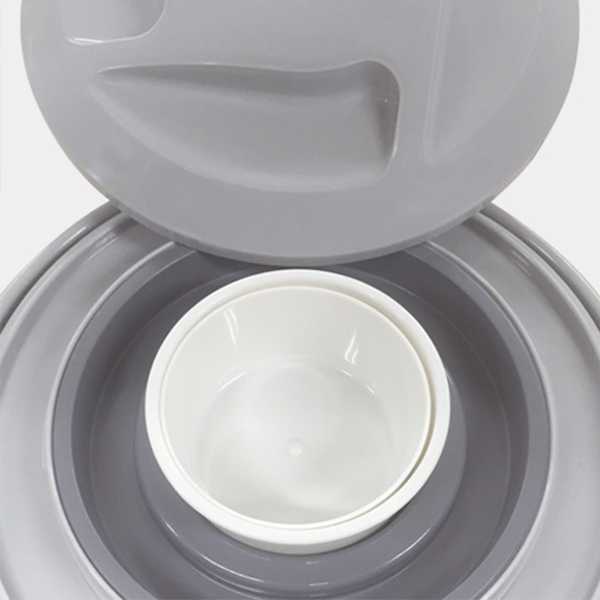 内ぶた付きなので、内容物が漏れにくく、安心の二重蓋構造です。また、大・小(計2個)のコップ付きで内蓋の上に重ねて収納ができます。