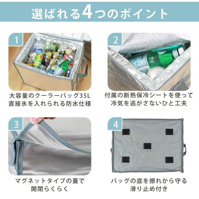 【在庫処分特価】 保冷バッグ 35L 折りたたみ ICE BOX マグネットタイプ ( 保冷 クーラーバック ソフトクーラー コンパクト 35リットル 35l 防水 大容量 組立式 断熱構造 組み立て 折り畳み マグネット 滑り止め付き シンプル )