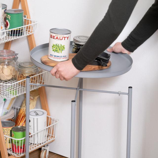 天板はフレームに固定されていませんので簡単に取り外すことができ、トレーとしても使えます。飲み物などを乗せたままで移動ができ一度に沢山運べてとても便利です。