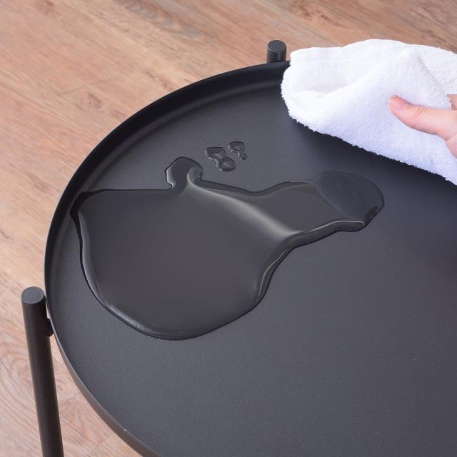 スチール製なのでお手入れが簡単です。濡れてもサッと拭け、汚れても天板を外して丸洗いすることもできます。