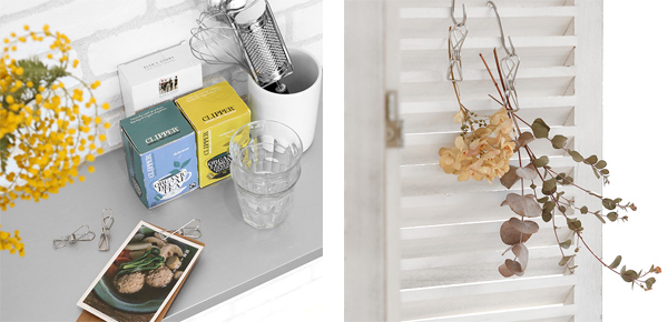 | キッチンで レシピのメモなどをまとめておいたり、コーヒーや紅茶の袋止めクリップとしても最適です。 | ディスプレイに おしゃれな見た目をいかしてディスプレイにお使いいただくのもおすすめです。 |