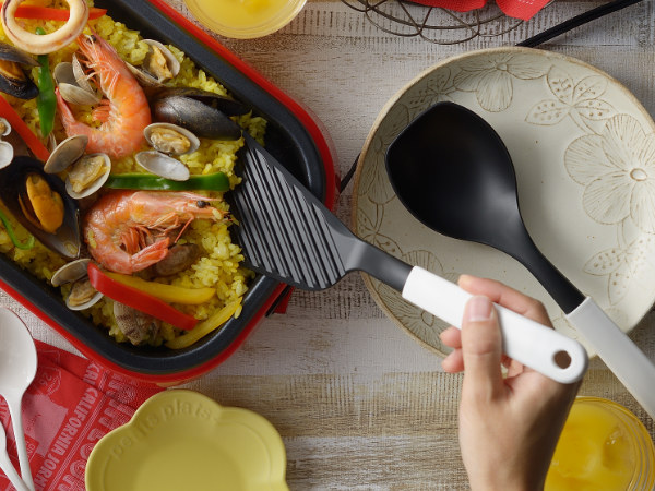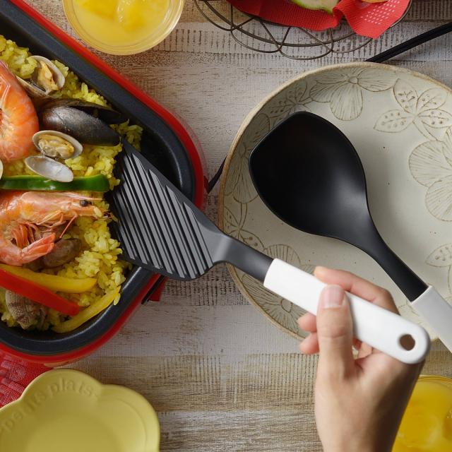 普段使いやおもてなしまで大活躍するホットプレート。そんなホットプレートでの調理に役立つツール『MOTTE(モッテ)』シリーズは、清潔感のあるホワイトハンドルでまとめました。
