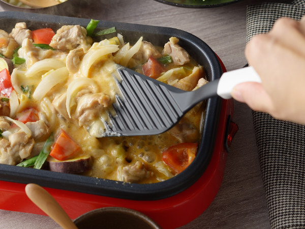 ホットプレートのフッ素加工を傷つけにくい樹脂素材でできています。耐熱温度も高いので安心してお使いいただけます。