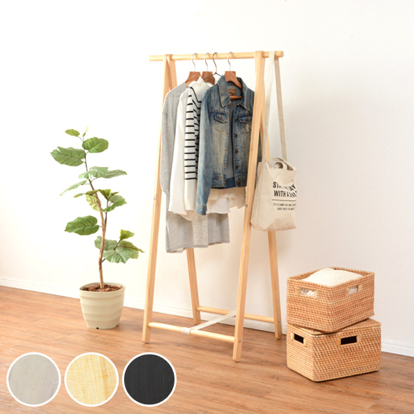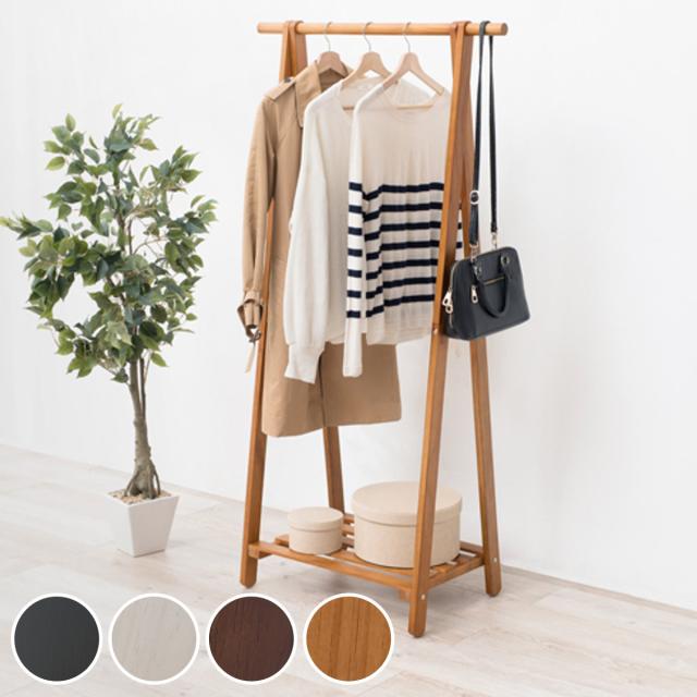 サッと折りたたんでコンパクトに収納できる天然木ハンガーラック