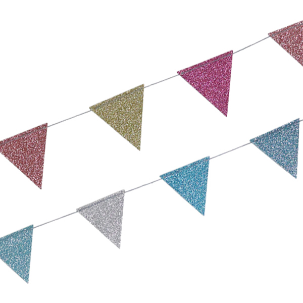フラッグの形をしたラメ付きガーランド