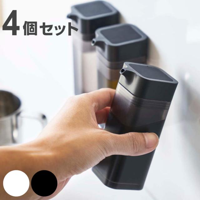 tower 山崎実業 マグネットプッシュ式醤油差し タワー 4個セット ( 4903208048156 タワーシリーズ しょうゆ差し 調味料入れ オイルボトル セット 調味料ボトル 醤油入れ ワンプッシュ tower 山崎実業 マグネット)