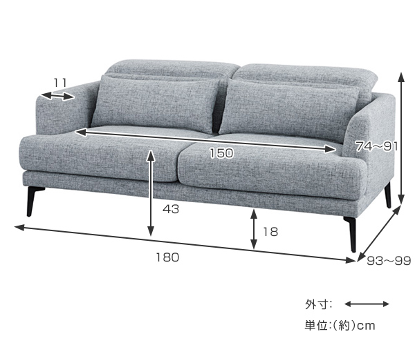 【サイズ】約幅180×奥行93〜99×高さ74〜91cm
