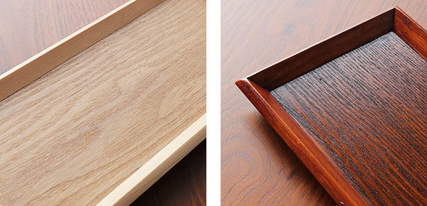 ナチュラルはお手入れが楽な「ウレタン塗装」、漆は木を丈夫かつ美しくする「漆塗り」。使うほどに味わい深く、木材本来の質感を楽しめます。