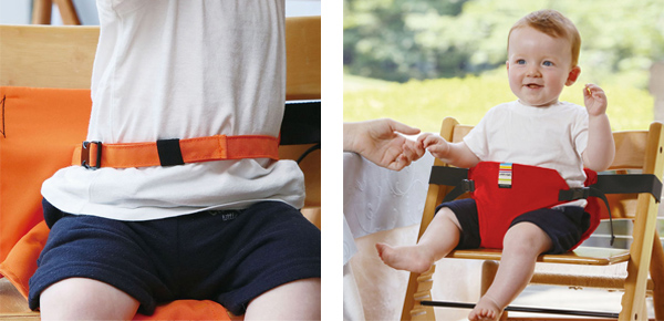 大人のウエストにも取り付けることができます。椅子ではぐずる赤ちゃんも、ママのお膝の上ではにっこり、ご機嫌でご飯を食べてくれるかもしれません。ベルトでしっかりと固定することによりママは両手が使えるので、離乳食の介助なども楽に行うことができます。