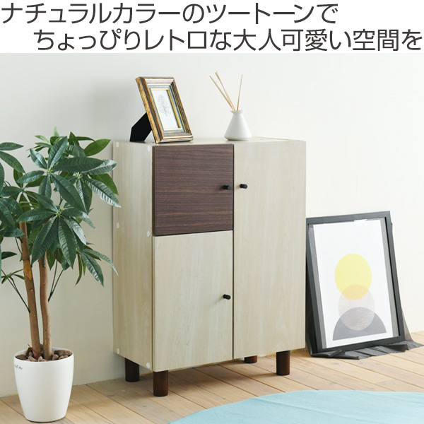 キャビネット 開き戸 幅60cm ツートーン 積み重ね対応 ( サイドボード 本棚 ラック 収納棚 木製 扉付き 収納 家具 リビング収納 ツートン おしゃれ 可愛い 大人可愛い 幅60 60cm )