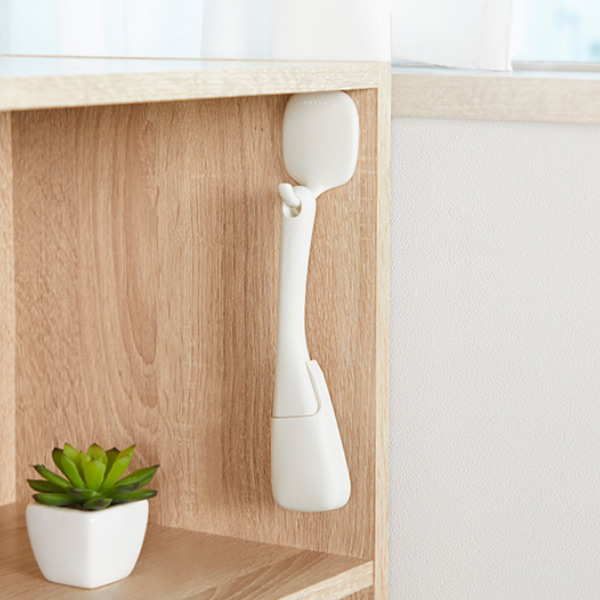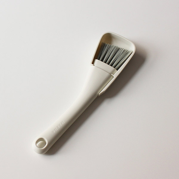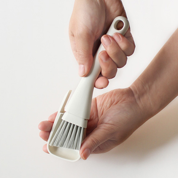ブラシは掃きやすい角度と密な植毛で、ゴミをしっかりキャッチしてすみずみまできれいにお掃除できます。カバーのヘラは固まったスミの汚れをかきとります。