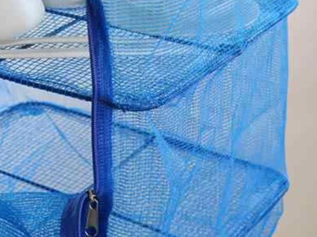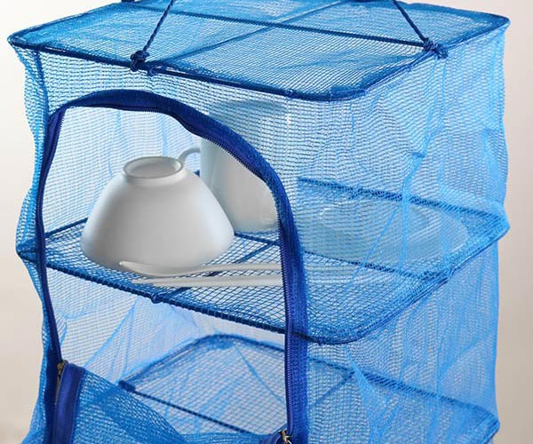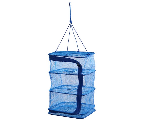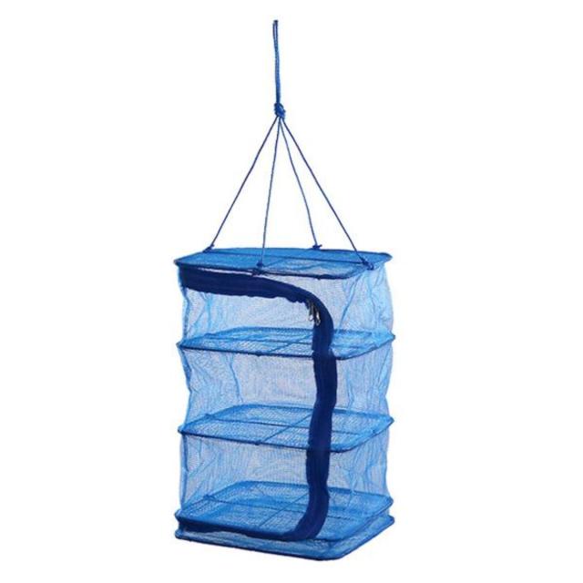 省スペースでたくさん乾燥できる3段タイプの干しかごです。手軽に野菜や魚を干したい方、少人数のキャンプにオススメです。ヒモが付いているので吊るして干せるようになっています。