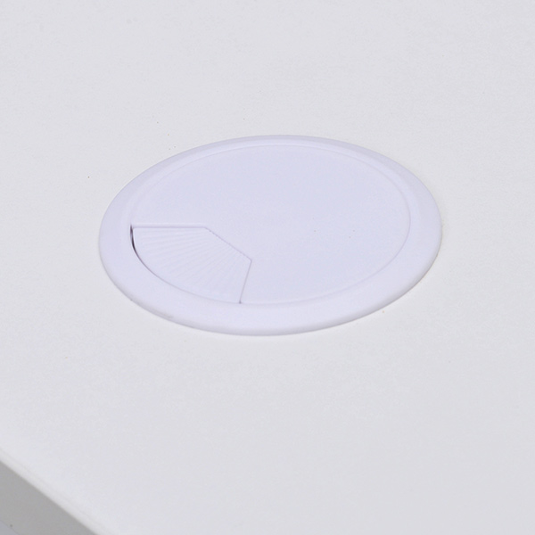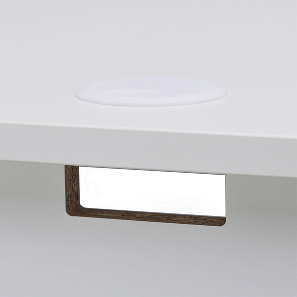 ●天板はキズのつきにくい低圧メラミン樹脂化粧、キャップ付きの配線穴があり、壁付けや対面レイアウトに対応しています。