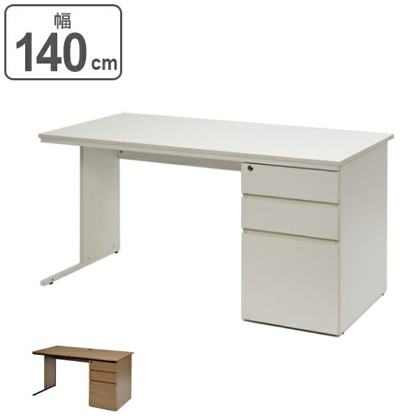 【法人限定】 デスク ワーキングデスク 片袖 幅140cm 奥行70cm ( 机 パソコンデスク オフィスデスク 140 ワイド 引き出し 3段 鍵付き 収納 PCデスク 学習机 つくえ 配線収納 奥行き70 センチ 省スペース オフィス 会社 家具 )