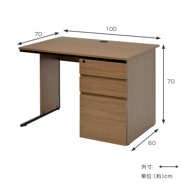 【法人限定】 デスク ワーキングデスク 片袖 幅100cm 奥行70cm ( 机 パソコンデスク オフィスデスク 100 引き出し 3段 鍵付き 収納 PCデスク 学習机 つくえ 配線収納 奥行き70 センチ 省スペース オフィス 会社 家具 )