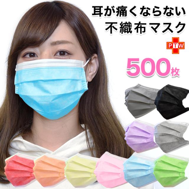 3層式不織布 カラー マスク 普通サイズ 500枚