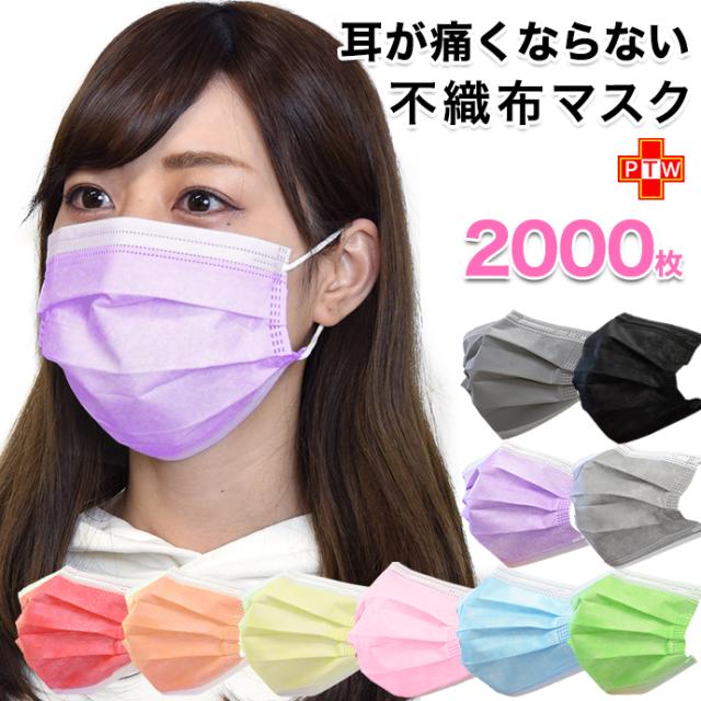 3層式不織布 カラー マスク 普通サイズ 2000枚