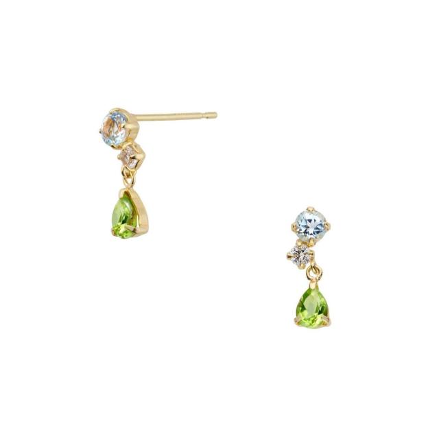 ブルーからペリドットの爽やかなグリーンへのグラデーションがみずみずしい印象のピアス。