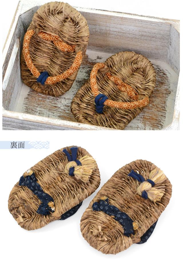 ・竹皮草履は多少滑りやすい事がございますので、階段やフローリングでのご使用や、ご年配の方など十分にご注意ください。