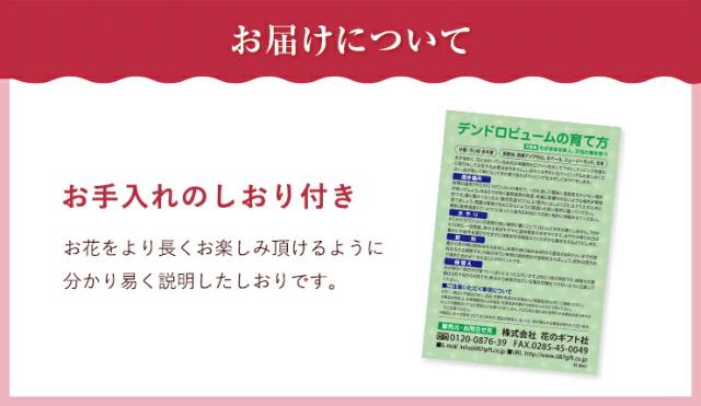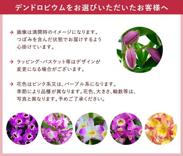 ※デンドロビウムの花色はピンク系またはパープル系になります。季節により品種が異なります。
