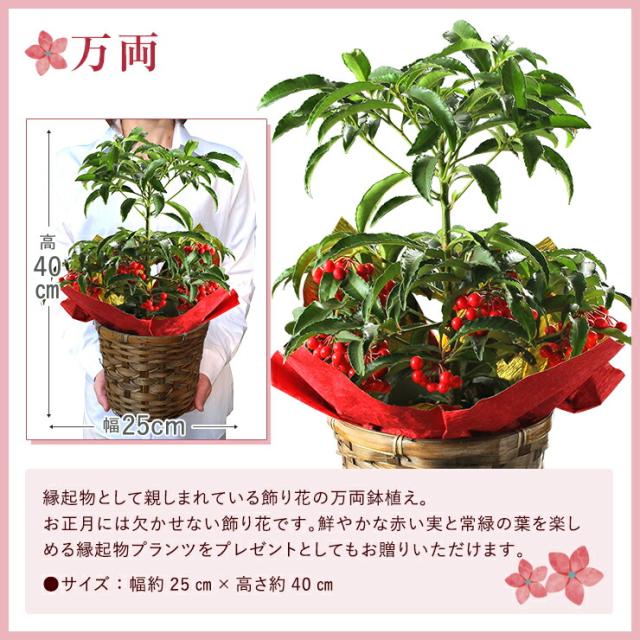■万両5号鉢植え、幅:約25cm、高さ:約40cm