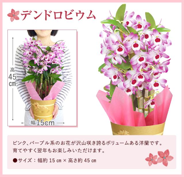 ■デンドロビューム4号鉢植え、幅:約15cm、高さ:約40〜45cm