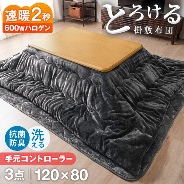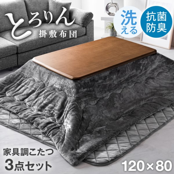 こたつ 3点セット 高さ調節 傷に強いUV天板 こたつテーブル + こたつ掛敷布団 ピーチスキン 120 長方形 傷に強い UV 天板 こたつセット テーブル こたつ布団 掛布団 こたつ掛け布団 こたつ敷き布団 家具調 北欧 木目