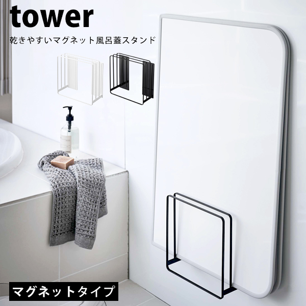 タワー 乾きやすいマグネット風呂蓋スタンド tower 風呂蓋ホルダー マグネット 風呂ふた ラック 5085 5086 ホワイト ブラック 山崎実業