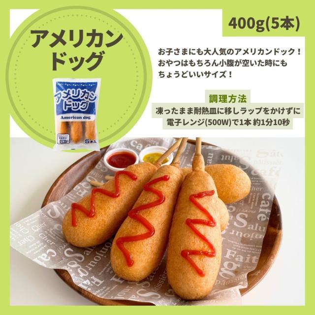 【調理方法】凍ったままの製品を袋から出して皿にのせ、ラップをかけずに電子レンジ(500W)で温めてください。1本:約1分10秒/2本:約2分10秒