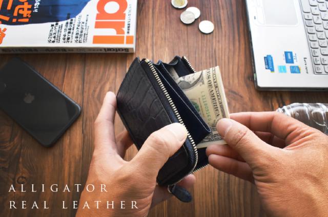 アリゲーター ワニ革 ミニ財布 メンズ レディース L字ファスナー 小さめ コンパクト 財布 本革 薄型 軽量 小さい財布 スリム レザー 小銭入れ キャッシュレス l字 収納 ビジネス カジュアル おしゃれ 大人 女性 男性 金運 風水 母の日 ギフト 送料無料