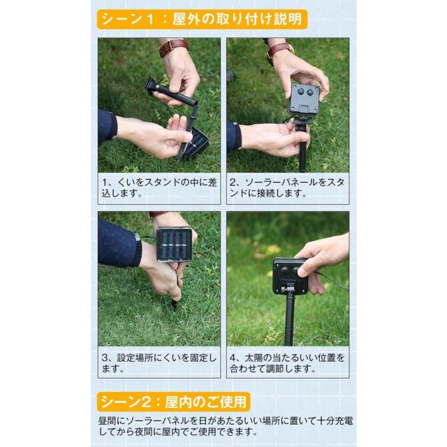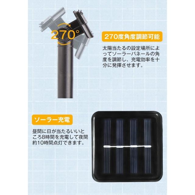 ※太陽電池駆動ですので、日光の状況はよくないまたは温度が低い場合、充電は不十分になるおそれがあると考えられます。照明時間もそれなりに短くなってしまいます。ご了承ください。