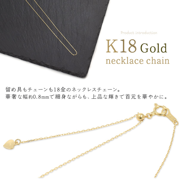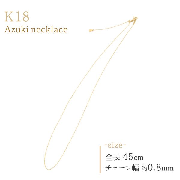 K18 ネックレス チェーン 45cm あずきカット 金18 無段階スライド式 ネックレスチェーン チェーンのみ 単品 k18 アクセサリーパーツ 18k 素材 手作り アクセサリー 素材 手芸 ペンダント お洒落 エレガント 上品