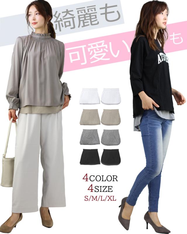 履くだけ カンタン 重ね着 付け裾 腹巻 レイヤード レディース フェイクレイヤード 体型カバー トップス つけ裾 体型カバー 重ね着風 可愛い 裾 裾出し 腰巻 ロング ロング丈 サイドスリット 大きいサイズ 女性用 f610-f625