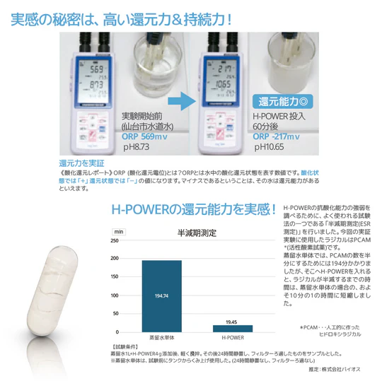 水に溶かしたりフードに混ぜるだけで、水分に反応して水素が発生します。