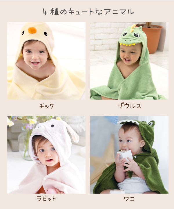 お風呂上りにサッとかぶれてとても便利。あっという間に可愛い動物に大変身!