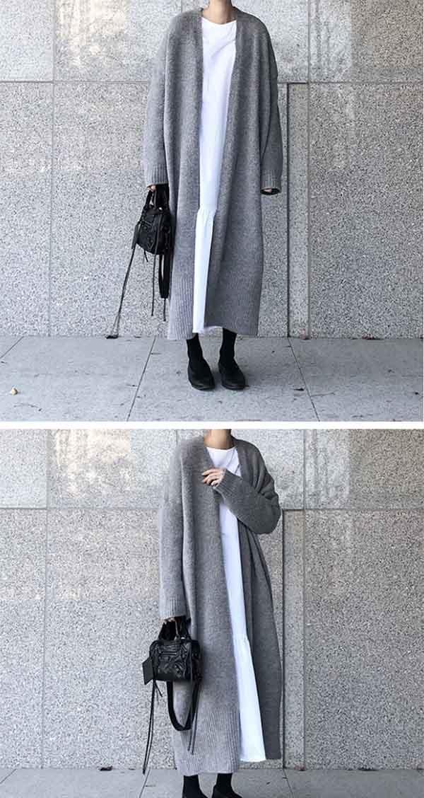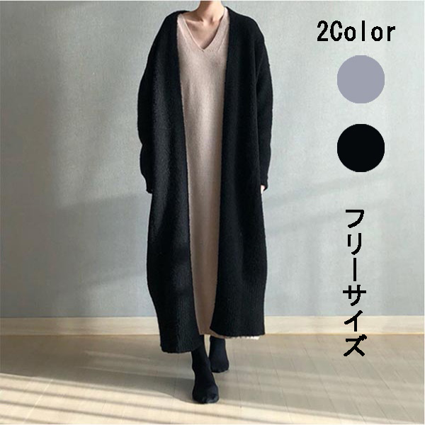ロングカーデ ニット ロング カーディガン セーター レディース 毛糸 前開き トップス 冷房対策 厚手 長袖 暖かい シンプル ゆったり 春 秋 アウター 大人 可愛い 韓国ファッション ins風 日常服 カジュアル 優しい 無地 おしゃれ エレガント ブラック グレー dg082f4