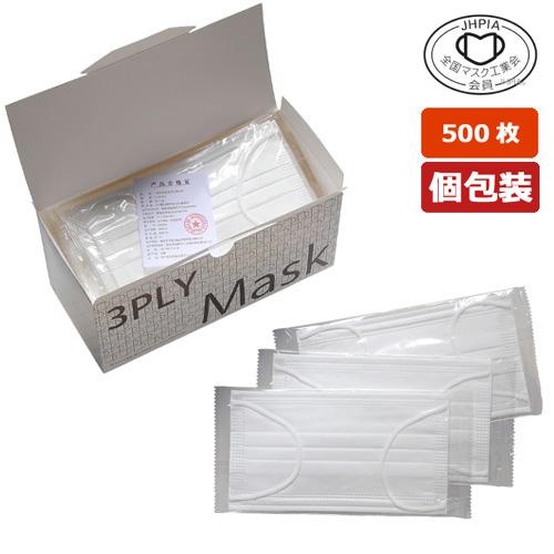 【JIS規格】【医療用マスク クラス2】CN223 『個包装』3プライマスク(ホワイト) 500枚_サージカル_3層構造マスク