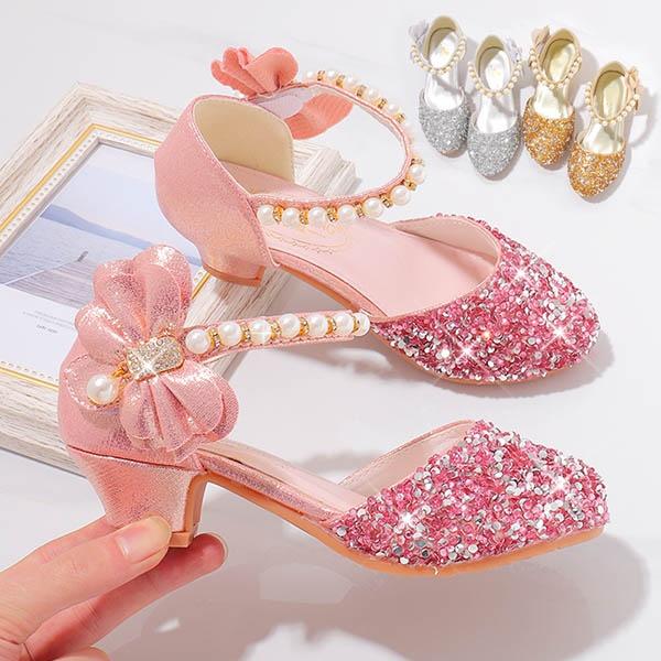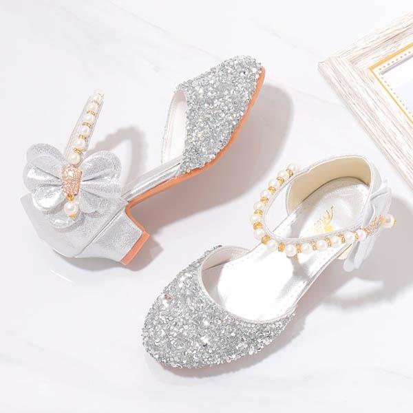 子供 サンダル マジックテープ リボン キラキラ プリンセス お姫様 シューズ キッズ 女の子 ストラップ ローヒール 蝶 シルバー ピンク ビーチ シューズ サマー 夏 普段履き かわいい パンプス 【17.0CM〜23.5CM】dt088x1
