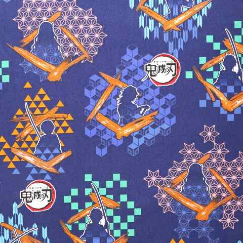 【オックス】鬼滅の刃 キャラクター 生地 布 幅約110cm 50cmカット ブルー 送料無料