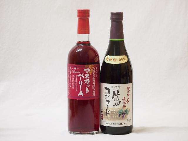 国産赤ワイン2本セット(山梨県産葡萄100%マスカットベーリーA 信州コンコード中口)720ml×2本