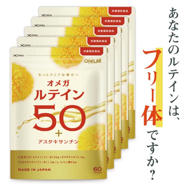 ルテイン サプリ サプリメント オメガルテイン50 ゼアキサンチン アスタキサンチン 濃いフリー体ルテイン 50mg配合 おトク5個セット