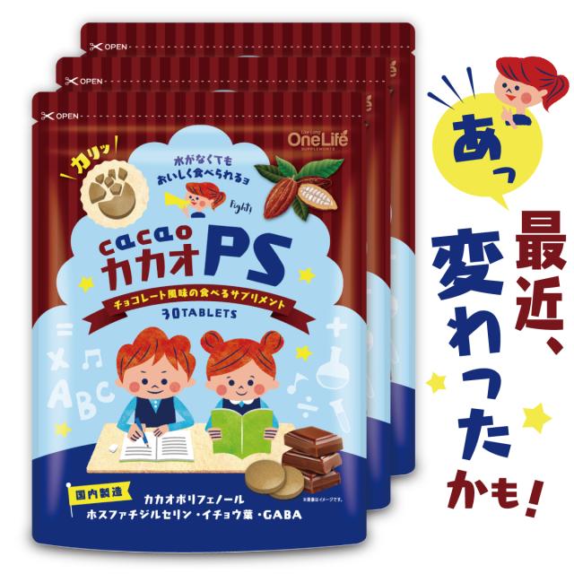 カカオPS ホスファチジルセリン PS サプリ 冴え ひらめきサポート 植物由来 こども 成長 受験 勉強 集中 サプリメント チョコレート風味 送料無料 30日分 ポイント消化 おトク3袋セット