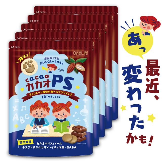 カカオPS ホスファチジルセリン PS サプリ 冴え ひらめきサポート 植物由来 こども 成長 受験 勉強 集中 サプリメント チョコレート風味 送料無料 30日分 ポイント消化 おトク5袋セット