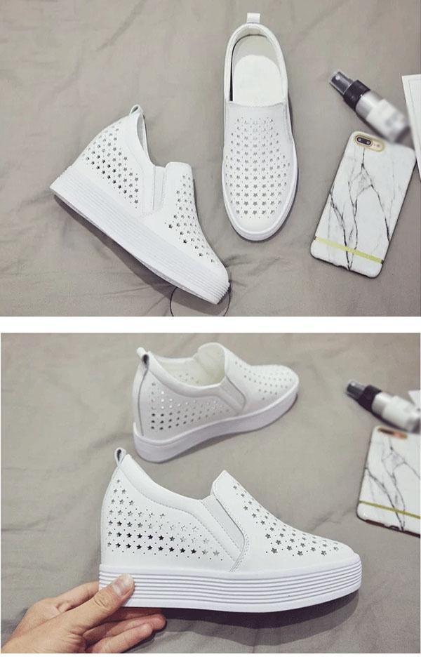 インヒール スニーカー ヒール 7cm メッシュ スリッポン 厚底 小さいサイズ 大きいサイズ ローカット ローファー 白い レディース スリッポン 通気 シルバー 白い靴 di083x1