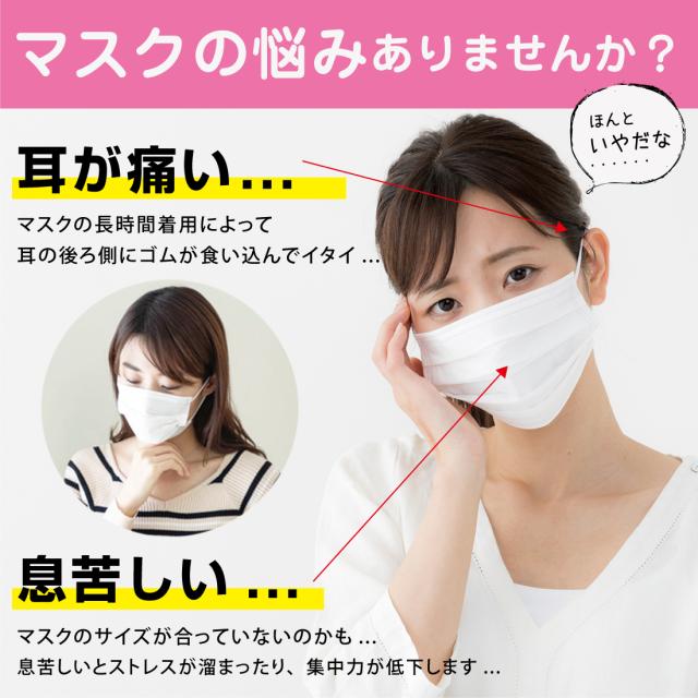 ・柔らかい耳紐で耳の負担軽減、耳紐調節可能。
