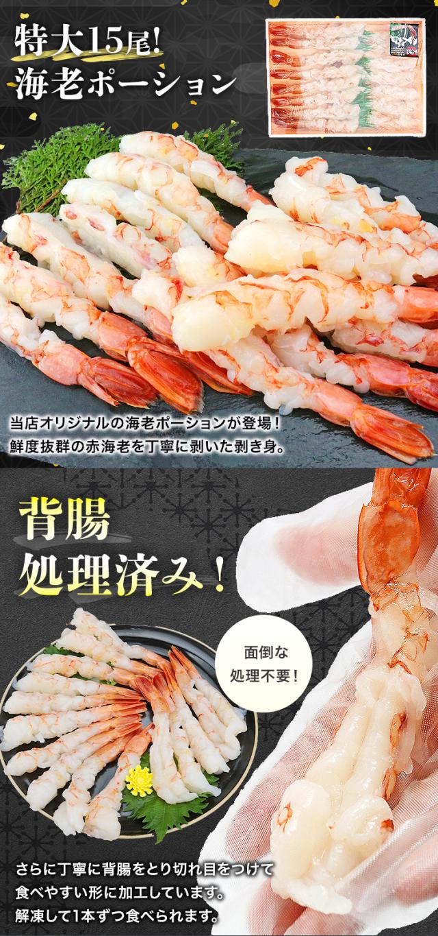 えび 刺身 特大 15尾 ポーション しゃぶしゃぶ用 エビ 海老 刺身用 赤海老 ギフト むきえび お刺身 生食 母の日 ギフト プレゼント