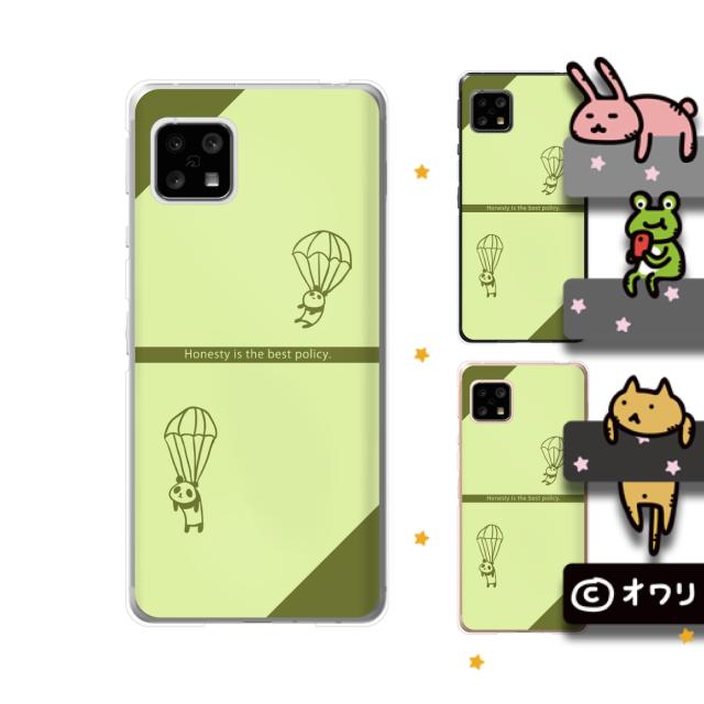 AQUOS sense5G(SHG03 / SH-53A / A004SH) / sense4 SH-41A 兼用 スマホ ケース カバー オワリ 「パンダパラシュート」 グリーン