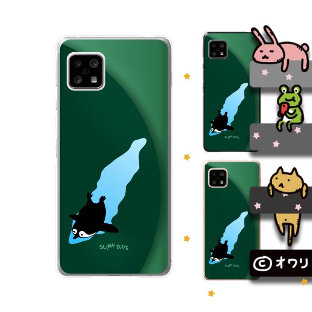 AQUOS sense5G(SHG03 / SH-53A / A004SH) / sense4 SH-41A 兼用 スマホ ケース カバー オワリ 「ダイブするペンギン」 グリーン