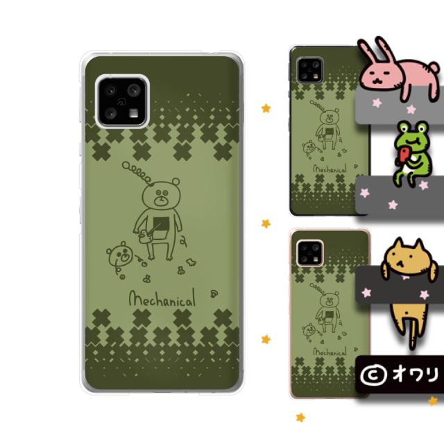 AQUOS sense5G(SHG03 / SH-53A / A004SH) / sense4 SH-41A 兼用 スマホ ケース カバー オワリ 「メカニカルなクマ」 グリーン